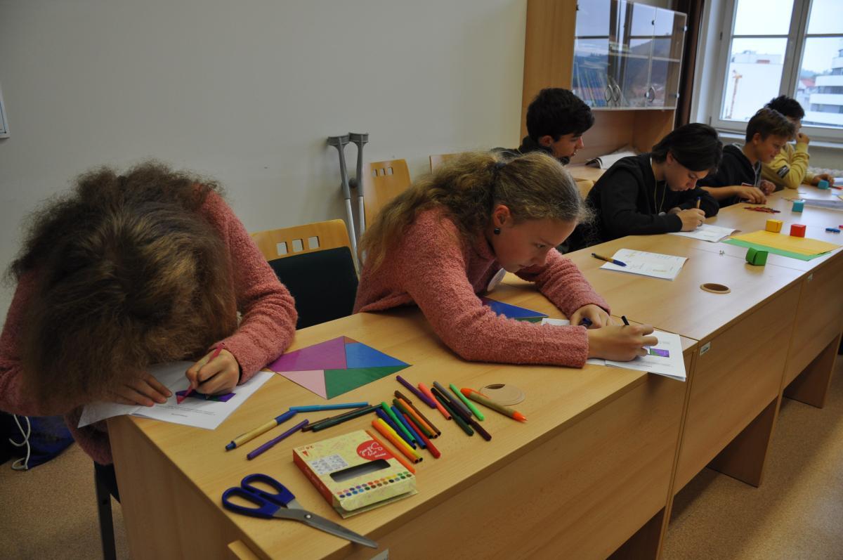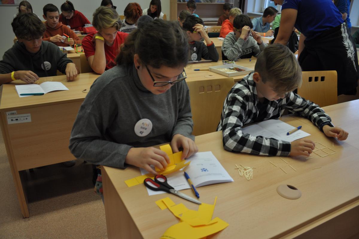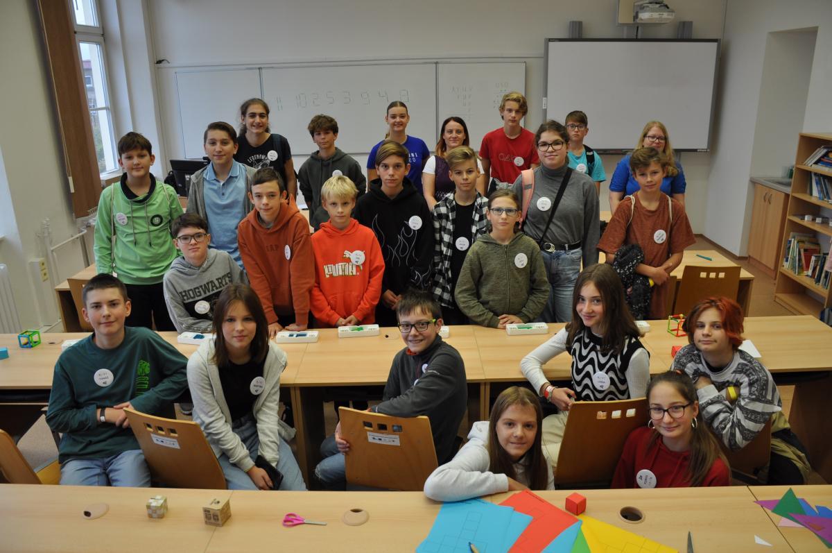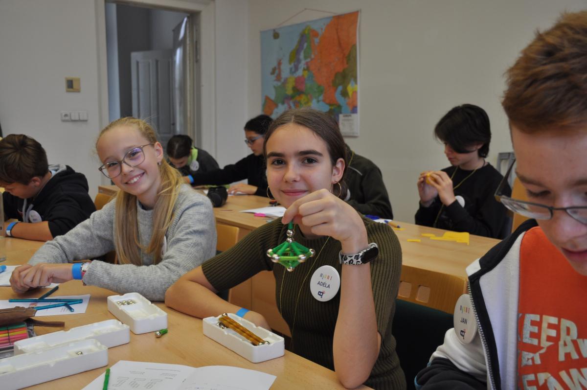 V matematickém workshopu s názvem Skládáme, stavíme a objevujeme (nejen) v geometrii jsme s mými pomocnicemi, studentkami Eliškou a Katkou, uvítaly celkem 46 žáků. Byli akční, nadšeni do řešení úloh a objevování nových poznatků.